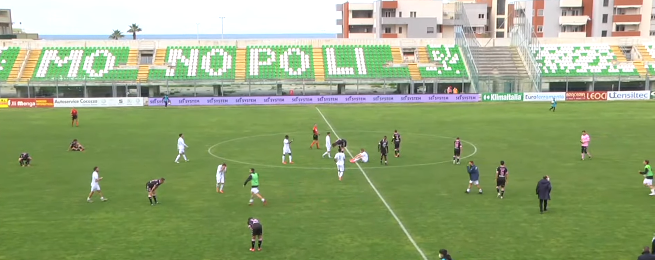 Il Palermo cede per la prima volta di fronte al Monopoli e Filippi perde la sua imbattibilità esterna. La sconfitta lascia i rosanero al nono posto, a tre punti dal Teramo ottavo. Pur privo di otto giocatori e con qualche titolare fermo da giorni per la positività al coronavirus, i biancoverdi non hanno rinunciato a giocare e a creare problemi alla squadra di Filippi, ogni qual volta questa gliene ha lasciato la possibilità. Anzi, nella ripresa, hanno preso il sopravvento su un Palermo svagato e senza la necessaria combattività.