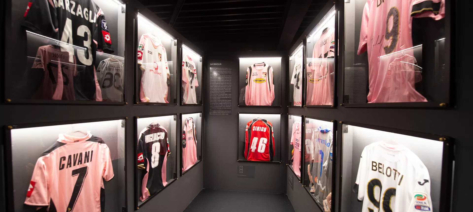 Così, tra una vecchia foto dei padri fondatori e un plastico in scala dello stadio Renzo Barbera, nel nuovo Palermo Museum si può vivere l’esperienza di allenarsi virtualmente con il Palermo, attraverso un’esperienza immersiva, con visori di realtà virtuale altamente tecnologici. Passando in rassegna le maglie storiche del Palermo, appese come vere e proprie opere d’arte in galleria, ci si ritrova poi a “indossarle” per gioco in un divertente photobooth tutto digitale. In un’apposita area multimediale scorrono filmati della storia antica e di quella recente, mescolando in un grande puzzle video indimenticabili e spezzoni di costume da vecchi tg, mentre in un piccolo “cinema” scorrono i riferimenti cinematografici al Palermo, tra una gag di Franco e Ciccio e una scena di Ficarra e Picone.