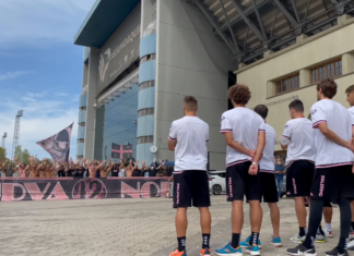 Palermo, la Curva Nord 12 incita la squadra in partenza dallo...